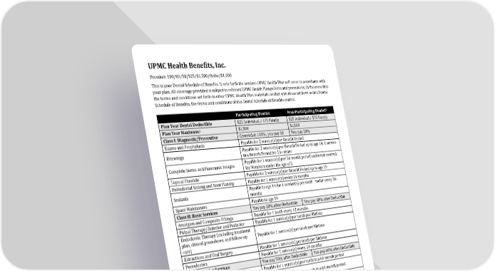UPMC Health Benefits: Dental Schedule of Benefits 2025