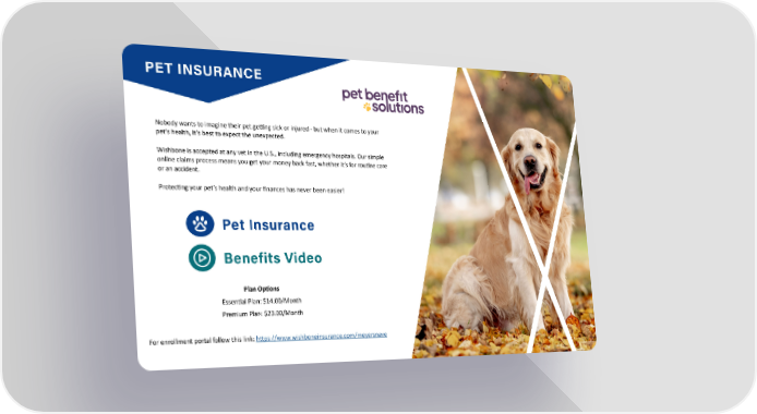 16 PET INSURANCE Nobody wants to imagine their pet getting sick or injured - but when it comes to your pet’s health, it’s best to expect the unexpected. Wishbone is accepted at any vet in the U.S., including emergency hospitals. Our simple online claims process means you get your money back fast, whether it’s for routine care or an accident. Protecting your pet’s health and your finances has never been easier! Pet Insurance Plan Options Essential Plan: $14.00/Month Premium Plan: $23.00/Month For enrollment portal follow this link: https://www.wishboneinsurance.com/meyersnave Benefits Video