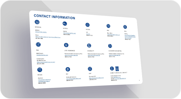 18 CONTACT INFORMATION Anthem www.anthem.com/ca Kaiser https://healthy.kaiserpermanente.org/front-door 800-464-4000 MetLife https://www.metlife.com/ 800-942-0854 VSP vsp.com 800-877-7195 Reliance Standard Life Insurance Firm www.reliancestandard.com 800-351-7500 Reliance Standard Life Insurance Firm www.reliancestandard.com 800-351-7500 BASIC Pacific www.basiconline.com Commuter Benefit Resource https://www.benefitresource.com/ 800-473-9595 Pet Benefit Solutions https://www.petbenefits.com/ 888-913-7387 MEDICAL DENTAL VISION LIFE INSURANCE DISABILITY FSA PET Reliance Standard Life Insurance Firm www.reliancestandard.com 800-351-7500 ACCIDENT/CI/HOSPITAL Optum Bank https://www.optumbank.com/ 866-234-8913 HSA Ascensus https://secure.ascensus. com/login/participant 888-652-8086 401(k) Benefit Resource Center Email: [email protected] Website: https://mymnbenefits.site/ 888-336-7463 BENEFITS RESOURCE CONTACT Claremont EAP https://www.claremonteap.com/ 1-800-834-3773 EAP Sterling https://www.sterlingadmin- istration.com/products/ster- ling-hra-services/ 800-617-4729 HRA