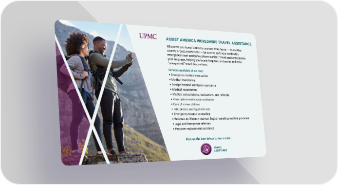 Whenever you travel 100 miles or more from home — to another country or just another city — be sure to pack your worldwide emergency travel assistance phone number. Travel assistance speaks your language, helping you locate hospitals, embassies and other “unexpected” travel destinations. ASSIST AMERICA WORLDWIDE TRAVEL ASSISTANCE Services available at no cost: • Emergency medical evacuation • Medical monitoring • Foreign hospital admission assistance • Medical repatriation • Medical consultations, evaluations, and referrals • Prescription medication assistance • Care of minor children • Interpreters and legal referrals • Emergency trauma counseling • Referrals to Western-trained, English-speaking medical providers • Legal and interpreter referrals • Passport replacement assistance Click on the icon below to learn more. TRAVEL ASSISTANCE