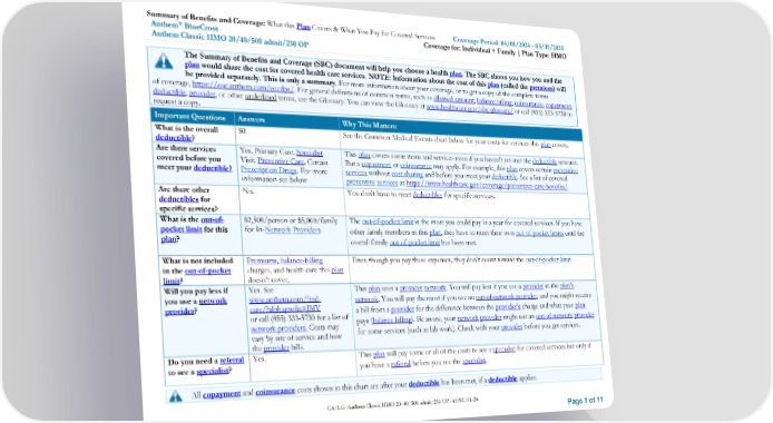 Anthem Classic HMO 20/40/500 admit/250 OP SBC