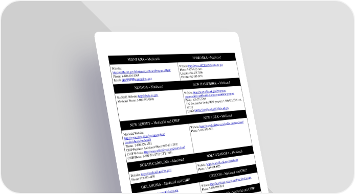 MONTANA Medicaid NEBRASKA Medicaid Website: http://dphhs.mt.gov/MontanaHealthcarePrograms/HIPP Phone: 1-800-694-3084 Email: [email protected] Website: http://www.ACCESSNebraska.ne.gov Phone: 1-855-632-7633 Lincoln: 402-473-7000 Omaha: 402-595-1178 NEVADA Medicaid NEW HAMPSHIRE Medicaid Medicaid Website: http://dhcfp.nv.gov Medicaid Phone: 1-800-992-0900 Website: https://www.dhhs.nh.gov/programs- services/medicaid/health-insurance-premium-program Phone: 603-271-5218 Toll free number for the HIPP program: 1-800-852-3345, ext. 15218 Email: [email protected] NEW JERSEY Medicaid and CHIP NEW YORK Medicaid Medicaid Website: http://www.state.nj.us/humanservices/ dmahs/clients/medicaid/ Phone: 1-800-356-1561 CHIP Premium Assistance Phone: 609-631-2392 CHIP Website: http://www.njfamilycare.org/index.html CHIP Phone: 1-800-701-0710 (TTY: 711) Website: https://www.health.ny.gov/health_care/medicaid/ Phone: 1-800-541-2831 NORTH CAROLINA Medicaid NORTH DAKOTA Medicaid Website: https://medicaid.ncdhhs.gov/ Phone: 919-855-4100 Website: https://www.hhs.nd.gov/healthcare Phone: 1-844-854-4825 OKLAHOMA Medicaid and CHIP OREGON Medicaid and CHIP Website: http://www.insureoklahoma.org Phone: 1-888-365-3742 Website: http://healthcare.oregon.gov/Pages/index.aspx Phone: 1-800-699-9075 PENNSYLVANIA Medicaid and CHIP RHODE ISLAND Medicaid and CHIP Website: https://www.pa.gov/en/services/dhs/apply-for- medicaid-health-insurance-premium-payment-program- hipp.html Phone: 1-800-692-7462 CHIP Website: Children's Health Insurance Program (CHIP) (pa.gov) CHIP Phone: 1-800-986-KIDS (5437) Website: http://www.eohhs.ri.gov/ Phone: 1-855-697-4347, or 401-462-0311 (Direct RIte Share Line) SOUTH CAROLINA Medicaid SOUTH DAKOTA - Medicaid Website: https://www.scdhhs.gov Phone: 1-888-549-0820 Website: http://dss.sd.gov Phone: 1-888-828-0059 9