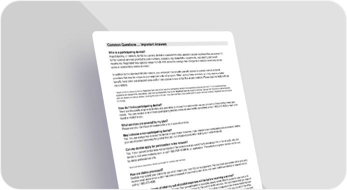 DN-GCERT-GOLD GCERT Voluntary Dental Benefit Summary 200 Park Ave., New York, NY 10166 © 2024 MetLife Services and Solutions, LLC L0623032885[exp0625][xNM] Common Questions … Important Answers Who is a participating dentist? A participating, or network, dentist is a general dentist or specialist who has agreed to accept negotiated fees as payment in full for covered services provided to plan members, subject to any deductibles, copayments, cost sharing and benefit maximums. Negotiated fees typically range from 30-45% below the average fees charged in a dentist’s community for the same or substantially similar services.* In addition to the standard MetLife network, your employer may provide you with access to a select network of dental providers that may be unique to your employer’s dental program. When visiting these providers, you may receive a better benefit, have lower out-of-pocket costs and/or have access to care at facilities at your worksite. Please sign into MyBenefits for more details. * Based on internal analysis by MetLife. Negotiated fees refer to the fees that participating dentists have agreed to accept as payment in full for covered services, subject to any copayments, deductibles, cost sharing and benefits maximums. Negotiated fees are subject to change. Savings from enrolling in a dental benefits plan will depend on various factors, including the cost of the plan, how often members visit a dentist and the cost of services rendered. Negotiated fees are subject to change. How do I find a participating dentist? There are thousands of general dentists and specialists to choose from nationwide --so you are sure to find one that meets your needs. You can receive a list of these participating dentists online at www.metlife.com/dental or call 1-800-275-4638 to have a list faxed or mailed to you. What services are covered by my plan? Please see your Certificate of Insurance for a list of covered services. May I choose a non-participating dentist? Yes. You are always free to select the dentist of your choice. However, if you choose a non-participating (out-of-network) dentist, your out-of-pocket costs may be greater than your out-of-pocket costs when visiting an in-network dentist. Can my dentist apply for participation in the network? Yes. If your current dentist does not participate in the network and you would like to encourage him or her to apply, ask your dentist to visit www.metdental.com, or call 1-866-PDP-NTWK for an application.* The website and phone number are for use by dental professionals only. * Due to contractual requirements, MetLife is prevented from soliciting certain providers. How are claims processed? Dentists may submit your claims for you which means you have little or no paperwork. You can track your claims online and even receive email alerts when a claim has been processed. If you need a claim form, visit www.metlife.com/dental or request one by calling 1-800-275-4638. Can I get an estimate of what my out-of-pocket expenses will be before receiving a service? Yes. You can ask for a pretreatment estimate. Your general dentist or specialist usually sends MetLife a plan for your care and requests an estimate of benefits. The estimate helps you prepare for the cost of dental services. We recommend that you request a pre-treatment estimate for services in excess of $300. Simply have your dentist submit a request online at www.metdental.com or call 1-877-MET-DDS9. You and your dentist will receive a benefit estimate for most procedures while you are still in the office. Actual payments may vary depending upon plan maximums, deductibles, frequency limits and other conditions at time of payment. Can MetLife help me find a dentist outside of the U.S. if I am traveling? Yes. Through international dental travel assistance services* you can obtain a referral to a local dentist by calling +1-312-356-5970 (collect) when outside the U.S. to receive immediate care until you can see your dentist. Coverage will be considered under your out-of-network benefits.** Please remember to hold on to all receipts to submit a dental claim. *International Dental Travel Assistance services are administered by AXA Assistance USA, Inc. (AXA Assistance). AXA Assistance provides dental referral services only. AXA Assistance is not affiliated with MetLife and any of its affiliates, and the services they provide are separate and apart from the benefits provided by MetLife. Referral services are not available in all locations. ** Refer to your Certificate of Insurance for your out-of-network dental coverage.