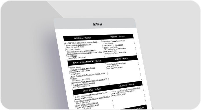 Notices GEORGIA – Medicaid INDIANA – Medicaid GA HIPP Website: https://medicaid.georgia.gov/health- insurance-premium-payment-program-hipp Phone: 678-564-1162, Press 1 GA CHIPRA Website: https://medicaid.georgia.gov/programs/third-party- liability/childrens-health-insurance-program-reauthorization- act-2009-chipra Phone: 678-564-1162, Press 2 Health Insurance Premium Payment Program All other Medicaid Website: https://www.in.gov/medicaid/ http://www.in.gov/fssa/dfr/ Family and Social Services Administration Phone: 1-800-403-0864 Member Services Phone: 1-800-457-4584 IOWA – Medicaid and CHIP (Hawki) KANSAS – Medicaid Medicaid Website: Iowa Medicaid | Health & Human Services Medicaid Phone: 1-800-338-8366 Hawki Website: Hawki - Healthy and Well Kids in Iowa | Health & Human Services Hawki Phone: 1-800-257-8563 HIPP Website: Health Insurance Premium Payment (HIPP) | Health & Human Services (iowa.gov) HIPP Phone: 1-888-346-9562 Website: https://www.kancare.ks.gov/ Phone: 1-800-792-4884 HIPP Phone: 1-800-967-4660 KENTUCKY – Medicaid LOUISIANA – Medicaid Kentucky Integrated Health Insurance Premium Payment Program (KI-HIPP) Website: https://chfs.ky.gov/agencies/dms/member/Pages/kihipp.aspx Phone: 1-855-459-6328 Email: [email protected] KCHIP Website: https://kynect.ky.gov Phone: 1-877-524-4718 Kentucky Medicaid Website: https://chfs.ky.gov/agencies/dms Website: www.medicaid.la.gov or www.ldh.la.gov/lahipp Phone: 1-888-342-6207 (Medicaid hotline) or 1-855-618-5488 (LaHIPP) MAINE – Medicaid MASSACHUSETTS – Medicaid and CHIP Enrollment Website: https://www.mymaineconnection.gov/benefits/s/?language=en _US Phone: 1-800-442-6003 TTY: Maine relay 711 Private Health Insurance Premium Webpage: https://www.maine.gov/dhhs/ofi/applications-forms Phone: 1-800-977-6740 TTY: Maine relay 711 Website: https://www.mass.gov/masshealth/pa Phone: 1-800-862-4840 TTY: 711 Email: [email protected] MINNESOTA – Medicaid MISSOURI – Medicaid Website: https://mn.gov/dhs/health-care-coverage/ Phone: 1-800-657-3672 Website: http://www.dss.mo.gov/mhd/participants/pages/hipp.htm Phone: 573-751-2005 8