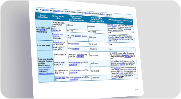 All copayment and coinsurance costs shown in this chart are after your deductible has been met, if a deductible applies. What You Will Pay What You Will Pay Common Services You May Limitations, Exceptions & Other Important Plan Provider Non-Plan Provider Medical Event Need Information (You will pay the least) (You will pay the most) Deductible waived for first three visits combined Primary care visit to for non-preventive primary care, urgent care, treat an injury or $50 / visit Not Covered mental/behavioral health and substance use illness disorder outpatient services. If you visit a health Specialist visit $50 / visit Not Covered None care provider's office or clinic You may have to pay for services that aren't Preventive care/ No Charge, deductible does not preventive. Ask your provider if the services screening/ Not Covered apply. needed are preventive. Then check what your immunization plan will pay for. Diagnostic test (x- 40% coinsurance Not Covered None ray, blood work) If you have a test Imaging (CT/PET 40% coinsurance Not Covered None scans, MRI's) Up to a 30-day supply retail or 100-day supply Generic drugs (Tier Retail: $15 / prescription; Mail mail order. Subject to formulary guidelines. No Not Covered 1) order: $30 / prescription Charge for Contraceptives, deductible does not apply. If you need drugs to treat your illness or Up to a 100-day supply retail and mail order. Preferred brand 40% coinsurance up to $100 / condition Not Covered Subject to formulary guidelines. No Charge for drugs (Tier 2) prescription More information Contraceptives, deductible does not apply. about prescription The cost sharing for non-preferred brand drugs drug coverage is Non-preferred brand 40% coinsurance up to $100 / under this plan aligns with the cost sharing for available at Not Covered drugs (Tier 2) prescription preferred brand drugs (Tier 2), when approved www.kp.org/formulary through the formulary exception process. Specialty drugs (Tier 40% coinsurance up to $250 / Up to a 30-day supply retail. Subject to Not Covered 4) prescription formulary guidelines. 2 of 8