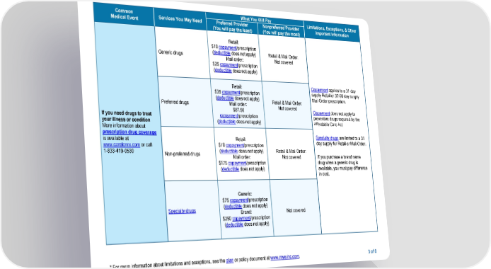 * For more information about limitations and exceptions, see the plan or policy document at www.myevhc.com. 3 of 8 Common Medical Event Services You May Need What You Will Pay Limitations, Exceptions, & Other Important Information Preferred Provider (You will pay the least) Nonpreferred Provider (You will pay the most) If you need drugs to treat your illness or condition More information about prescription drug coverage is available at www.carelonrx.com or call 1-833-419-0530 Generic drugs Retail: $10 copayment/prescription (deductible does not apply) Mail order: $25 copayment/prescription (deductible does not apply) Retail & Mail Order: Not covered Copayment applies to a 31-day supply Retail or 32-90 day supply Mail-Order prescription. Copayment does not apply to preventive drugs required by the Affordable Care Act. Specialty drugs are limited to a 31 day supply for Retail or Mail Order. If you purchase a brand name drug when a generic drug is available, you must pay difference in cost. Preferred drugs Retail: $35 copayment/prescription (deductible does not apply) Mail order: $87.50 copayment/prescription (deductible does not apply) Retail & Mail Order: Not covered Non-preferred drugs Retail: $70 copayment/prescription (deductible does not apply) Mail order: $175 copayment/prescription (deductible does not apply) Retail & Mail Order: Not covered Specialty drugs Generic: $75 copayment/prescription (deductible does not apply) Brand: $250 copayment/prescription (deductible does not apply) Not covered