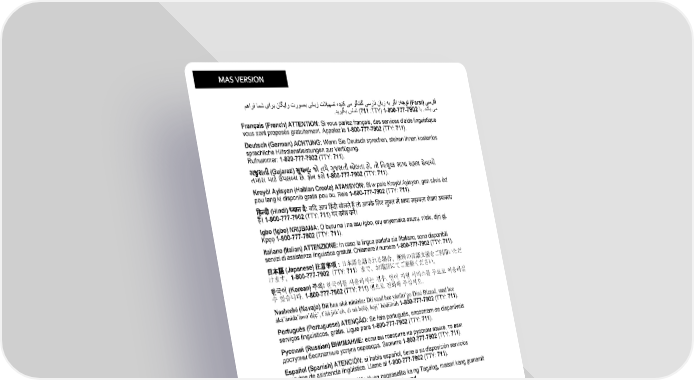 MAS VERSION مهارف امش یارب ناگيار تروصب ینابز تلايهست ،دينک یم وگتفگ یسراف نابز هب رگا :هجوت (Farsi) یسراف .ديريگب سامت (711 :TTY) 1-800-777-7902 اب .دشاب یم Français (French) ATTENTION: Si vous parlez français, des services d'aide linguistique vous sont proposés gratuitement. Appelez le 1-800-777-7902 (TTY: 711). Deutsch (German) ACHTUNG: Wenn Sie Deutsch sprechen, stehen Ihnen kostenlos sprachliche Hilfsdienstleistungen zur Verfügung. Rufnummer: 1-800-777-7902 (TTY: 711). ુ ુ ુુ ુ ુ ગ ગજજરરાાતતીી (Gujarati) સસચચનનાા:: જો તમ ે ગજરાતી બોલતા હો, તો નન:શલ્ક ભાષા સહાય સેવાઓ ે તમારા માટ ઉપલબ્ધ છે. ફોન કરો 1-800-777-7902 (TTY: 711). Kreyòl Ayisyen (Haitian Creole) ATANSYON: Si w pale Kreyòl Ayisyen, gen sèvis èd pou lang ki disponib gratis pou ou. Rele 1-800-777-7902 (TTY: 711). ह हिन्दी ध्यान दें ििं दी बोलते िैं तो आ प के ललए मुफ्त में भाषा सिायता सेवाएिं उपलब्ध िन्दी (Hindi) ध्यान दें: यहद आप ह िैं । 1-800-777-7902 (TTY: 711) पर कॉल करें। Igbo (Igbo) NRỤBAMA: Ọ bụrụ na ị na asụ Igbo, ọrụ enyemaka asụsụ, n’efu, dịịrị gị. Kpọọ 1-800-777-7902 (TTY: 711). Italiano (Italian) ATTENZIONE: In caso la lingua parlata sia l'italiano, sono disponibili servizi di assistenza linguistica gratuiti. Chiamare il numero 1-800-777-7902 (TTY: 711). 日 日本語 注意事項: 本語を話される場合、無料の言語支援をご利用いただ 本語 (Japanese) 注意事項:日 けます。1-800-777-7902(TTY: 711)まで、お電話にてご連絡ください。 한한국국어어 (Korean) 주주의의:: 한국어를 사용하시는 경우, 언어 지원 서비스를 무료로 이용하실 수 있습니다. 1-800-777-7902 (TTY: 711) 번으로 전화해 주십시오. Naabeehó (Navajo) Díí baa akó nínízin: Díí saad bee yáníłti’go Diné Bizaad, saad bee áká’ánída’áwo’déé’, t’áá jiik’eh, éí ná hóló, koji’ hódíílnih 1-800-777-7902 (TTY: 711). ̖ ̖ ̖ ̖ Português (Portuguese) ATENÇÃO: Se fala português, encontram-se disponíveis serviços linguísticos, grátis. Ligue para 1-800-777-7902 (TTY: 711). Pусский (Russian) ВНИМАНИЕ: eсли вы говорите на русском языке, то вам доступны бесплатные услуги перевода. Звоните 1-800-777-7902 (TTY: 711). Español (Spanish) ATENCIÓN: si habla español, tiene a su disposición servicios gratuitos de asistencia lingüística. Llame al 1-800-777-7902 (TTY: 711). Tagalog (Tagalog) PAUNAWA: Kung nagsasalita ka ng Tagalog, maaari kang gumamit ng mga serbisyo ng tulong sa wika nang walang bayad. Tumawag sa 1-800-777-7902 (TTY: 711). ้ ่ ไทย (Thai) เรียน: ถา้ คณุ พดู ภาษาไทย คณุ สามารถใชบรกิ ารชวยเหลอื ทางภาษาไดฟ้ ร ี โทร 1-800-777-7902 (TTY: 711). ُ لاک ۔ ںيہ بايتسد ںيم تفم تامدخ یک ددم یک نابز وک پآ وت ،ںيہ ےتلوب ودرا پآ رگا :رادربخ (Urdu) ودرا . ںيرک (711 :TTY) 1-800-777-7902 Tiếng Việt (Vietnamese) CHÚ Ý: Nếu bạn nói Tiếng Việt, có các dịch vụ hỗ trợ ngôn ngữ miễn phí dành cho bạn. Gọi số 1-800-777-7902 (TTY: 711). Yorùbá (Yoruba) AKIYESI: Ti o ba nso ede Yoruba ofe ni iranlowo lori ede wa fun yin o. E pe ero ibanisoro yi 1-800-777-7902 (TTY: 711). 60577108_ACA_1557_MarCom_MAS_2017_Taglines