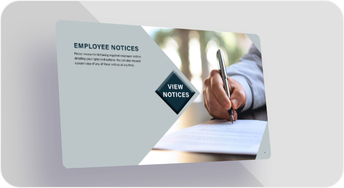 13 VIEW NOTICES EMPLOYEE NOTICES Please review the following required employee notices detailing your rights and options. You can also request a paper copy of any of these notices at any time.