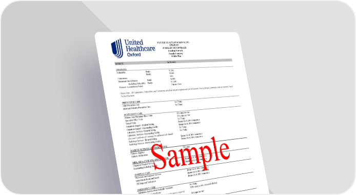 OXFORD HEALTH INSURANCE, INC. EPO PLAN SUMMARY OF COVERAGE Freedom Network Sample Company Middle Plan BENEFIT In-Network FINANCIAL Deductible: Single $1,500 Family $3,000 Coinsurance 20% Maximum Out-of-Pocket: Single $6,000 (Including Deductible) Family $12,000 Financial Accumulation Period: Calendar Year Please Note: All Copayments, Deductibles, and Coinsurance (medical and prescription) paid for In-Network Covered Services contribute to the In-Network, Out-of- Pocket Maximum. PREVENTIVE CARE Adult Preventive Care No Charge Infant and Pediatric Preventive Care No Charge OUTPATIENT CARE Primary Care Physician Office Visits $30 copay per visit Specialist Office Visits $50 copay per visit Virtual Visits No Charge Outpatient Surgery - Hospital Setting Deductible & 20% Coinsurance Outpatient Surgery - Freestanding Facility Deductible & 20% Coinsurance Laboratory Services - Hospital Setting No Charge Laboratory Services - Freestanding Facility No Charge (See your Certificate of Coverage for additional Lab details) Radiology Services - Hospital Setting Deductible & 20% Coinsurance Radiology Services - Freestanding Facility Deductible & 20% Coinsurance DIABETIC SUPPLIES AND MEDICATIONS Diabetic Supplies $30 copay Diabetic Medications $30 copay MRIs, MRAs, CT SCANS, AND PET SCANS Outpatient Hospital Services Deductible & 20% Coinsurance Freestanding Radiology Facility Deductible & 20% Coinsurance Sample HOSPITAL CARE Physician's and Surgeon's Services Deductible & 20% Coinsurance Semi-Private Room and Board Deductible & 20% Coinsurance All Drugs and Medication Deductible & 20% Coinsurance EMERGENCY CARE Ambulance Service when Medically Necessary No Charge At Hospital Emergency Room $500 copay per visit; waived if admitted (If member is admitted to the hospital, notification is required) Emergency Care in Urgi-Center $50 copay per visit MATERNITY CARE Routine Prenatal and Post-Natal Care No Charge Hospital Services for Mother and Child Deductible & 20% Coinsurance SKILLED NURSING FACILITY 30 Days per Calendar Year Deductible & 20% Coinsurance HOSPICE CARE Inpatient Care Deductible & 20% Coinsurance Home Hospice Care Visits $50 copay per visit HOME HEALTH CARE Home Care Visits - 40 visits per Calendar Year $50 copay per visit Physician House Calls $50 copay per visit SUBSTANCE USE DISORDER SERVICES Inpatient Rehabilitation Deductible & 20% Coinsurance Office Visits or Outpatient Rehabilitation $30 copay per visit Outpatient Partial Hospitalization No Charge MENTAL HEALTH CARE Inpatient Care Deductible & 20% Coinsurance Office Visits or Outpatient Care $50 copay per visit Outpatient Partial Hospitalization No Charge NYLG_EPO_01.01.23_v.1 1280471 January 1, 2023 Page 1 of 2