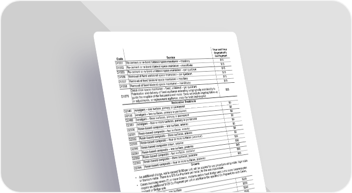 Page 4 of 22 MET245_SOB_CA (01/25) Fs/f GCERT2010-DHMO-SOB sob Code Service Your and Your Dependent's Co-Payment D1551 Re-cement or re-bond bilateral space maintainer – maxillary $15 D1552 Re-cement or re-bond bilateral space maintainer – mandibular $15 D1553 Re-cement or re-bond unilateral space maintainer – per quadrant $15 D1556 Removal of fixed unilateral space maintainer – per quadrant $15 D1557 Removal of fixed bilateral space maintainer – maxillary $15 D1558 Removal of fixed bilateral space maintainer – mandibular $15 D1575 Distal shoe space maintainer – fixed, unilateral – per quadrant Fabrication and delivery of fixed appliance extending subgingivally and distally to guide the eruption of the first permanent molar. Does not include ongoing follow-up or adjustments, or replacement appliance, once the tooth had erupted $25 Restorative Treatment D2140 Amalgam – one surface, primary or permanent $0 D2150 Amalgam – two surfaces, primary or permanent $0 D2160 Amalgam – three surfaces, primary or permanent $0 D2161 Amalgam – four or more surfaces, primary or permanent $0 D2330 Resin-based composite – one surface, anterior $0 D2331 Resin-based composite – two surfaces, anterior $0 D2332 Resin-based composite – three surfaces, anterior $0 D2335 Resin-based composite – four or more surfaces (anterior) $0 D2390 Resin-based composite crown, anterior $30 D2391 Resin-based composite – one surface, posterior $30 D2392 Resin-based composite – two surfaces, posterior $45 D2393 Resin-based composite – three surfaces, posterior $65 D2394 Resin-based composite – four or more surfaces, posterior $65 Crowns • An additional charge, not to exceed $150 per unit, will be applied for any procedure using noble, high noble or titanium metal. There is a $75 Co-Payment per molar, for the use of porcelain. • Cases involving seven (7) or more Crowns, implants and/or fixed Bridge units in the same treatment plan require an additional $125 Co-Payment per unit in addition to the specified Co-Payment for each Crown, implant or Bridge unit. D2510 Inlay – metallic – one surface $225 D2520 Inlay – metallic – two surfaces $235 D2530 Inlay – metallic – three or more surfaces $245 D2542 Onlay – metallic – two surfaces $245 D2543 Onlay – metallic – three surfaces $260 D2544 Onlay – metallic – four or more surfaces $270 D2610 Inlay – porcelain/ceramic – one surface $245 D2620 Inlay – porcelain/ceramic – two surfaces $245 D2630 Inlay – porcelain/ceramic – three or more surfaces $245 D2642 Onlay – porcelain/ceramic – two surfaces $245 D2643 Onlay – porcelain/ceramic – three surfaces $245 D2644 Onlay – porcelain/ceramic – four or more surfaces $245 D2650 Inlay – resin-based composite – one surface $245 D2651 Inlay – resin-based composite – two surfaces $245 D2652 Inlay – resin-based composite – three or more surfaces $245 D2662 Onlay – resin-based composite – two surfaces $245