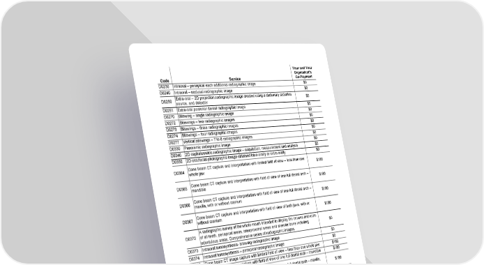 Page 2 of 22 MET245_SOB_CA (01/25) Fs/f GCERT2010-DHMO-SOB sob Code Service Your and Your Dependent's Co-Payment D0230 Intraoral – periapical each additional radiographic image $0 D0240 Intraoral – occlusal radiographic image $0 D0250 Extra-oral – 2D projection radiographic image created using a stationary radiation source, and detector $0 D0251 Extra-oral posterior dental radiographic image $0 D0270 Bitewing – single radiographic image $0 D0272 Bitewings – two radiographic images $0 D0273 Bitewings – three radiographic images $0 D0274 Bitewings – four radiographic images $0 D0277 Vertical bitewings – 7 to 8 radiographic images $0 D0330 Panoramic radiographic image $0 D0340 2D cephalometric radiographic image – acquisition, measurement and analysis $0 D0350 2D oral/facial photographic image obtained intra-orally or extra-orally $0 D0364 Cone beam CT capture and interpretation with limited field of view – less than one whole jaw $180 D0365 Cone beam CT capture and interpretation with field of view of one full dental arch – mandible $180 D0366 Cone beam CT capture and interpretation with field of view of one full dental arch – maxilla, with or without cranium $180 D0367 Cone beam CT capture and interpretation with field of view of both jaws, with or without cranium $180 D0372 A radiographic survey of the whole mouth intended to display the crowns and roots of all teeth, periapical areas, interproximal areas and alveolar bone including edentulous areas. Comprehensive series of radiographic images. $0 D0373 Intraoral tomosynthesis- bitewing radiographic image $0 D0374 Intraoral tomosynthesis – periapical radiographic image $0 D0380 Cone beam CT image capture with limited field of view – less than one whole jaw $180 D0381 Cone beam CT image capture with field of view of one full dental arch – mandible $180 D0382 Cone beam CT image capture with field of view of one full dental arch – maxilla, with or without cranium $180 D0383 Cone beam CT image capture with field of view of both jaws, with or without cranium $180 D0391 Interpretation of diagnostic image by a practitioner not associated with capture of the image, including report $0 D0396 3D printing of a 3D dental surface scan $0 Tests and Examinations D0415 Collection of microorganisms for culture and sensitivity $0 D0425 Caries susceptibility tests $0 D0431 Adjunctive pre-diagnostic test that aids in detection of mucosal abnormalities including premalignant and malignant lesions, not to include cytology or biopsy procedures $50