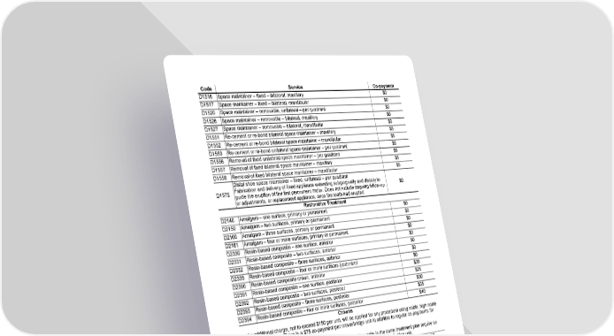 GCERT2010-DHMO-SOB sob Customer Service (800) 880-1800 Page 3 of 16 SGM_SOB_SGX_100-CA (01/24) Fs/f Code Service Co-payment D1516 Space maintainer – fixed – bilateral, maxillary $0 D1517 Space maintainer – fixed – bilateral, mandibular $0 D1520 Space maintainer – removable, unilateral – per quadrant $0 D1526 Space maintainer – removable – bilateral, maxillary $0 D1527 Space maintainer – removable – bilateral, mandibular $0 D1551 Re-cement or re-bond bilateral space maintainer – maxillary $5 D1552 Re-cement or re-bond bilateral space maintainer – mandibular $5 D1553 Re-cement or re-bond unilateral space maintainer – per quadrant $5 D1556 Removal of fixed unilateral space maintainer – per quadrant $5 D1557 Removal of fixed bilateral space maintainer – maxillary $5 D1558 Removal of fixed bilateral space maintainer – mandibular $5 D1575 Distal shoe space maintainer – fixed, unilateral – per quadrant Fabrication and delivery of fixed appliance extending subgingivally and distally to guide the eruption of the first permanent molar. Does not include ongoing follow-up or adjustments, or replacement appliance, once the tooth had erupted $0 Restorative Treatment D2140 Amalgam – one surface, primary or permanent $0 D2150 Amalgam – two surfaces, primary or permanent $0 D2160 Amalgam – three surfaces, primary or permanent $0 D2161 Amalgam – four or more surfaces, primary or permanent $0 D2330 Resin-based composite – one surface, anterior $0 D2331 Resin-based composite – two surfaces, anterior $0 D2332 Resin-based composite – three surfaces, anterior $0 D2335 Resin-based composite – four or more surfaces (anterior) $0 D2390 Resin-based composite crown, anterior $20 D2391 Resin-based composite – one surface, posterior $25 D2392 Resin-based composite – two surfaces, posterior $30 D2393 Resin-based composite – three surfaces, posterior $35 D2394 Resin-based composite – four or more surfaces, posterior $40 Crowns • An additional charge, not to exceed $150 per unit, will be applied for any procedure using noble, high noble or titanium metal. There is a $75 co-payment per crown/bridge unit in addition to regular co-payments for porcelain on molars. • Cases involving seven (7) or more crowns and/or fixed bridge units in the same treatment plan require an additional $125 co-payment per unit in addition to co-payment for each crown/bridge unit. D2510 Inlay – metallic – one surface $100 D2520 Inlay – metallic – two surfaces $100 D2530 Inlay – metallic – three or more surfaces $100 D2542 Onlay – metallic – two surfaces $100 D2543 Onlay – metallic – three surfaces $100 D2544 Onlay – metallic – four or more surfaces $100 D2610 Inlay – porcelain/ceramic – one surface $100 D2620 Inlay – porcelain/ceramic – two surfaces $100 D2630 Inlay – porcelain/ceramic – three or more surfaces $100 D2642 Onlay – porcelain/ceramic – two surfaces $100 D2643 Onlay – porcelain/ceramic – three surfaces $100 D2644 Onlay – porcelain/ceramic – four or more surfaces $100 D2650 Inlay – resin-based composite – one surface $100