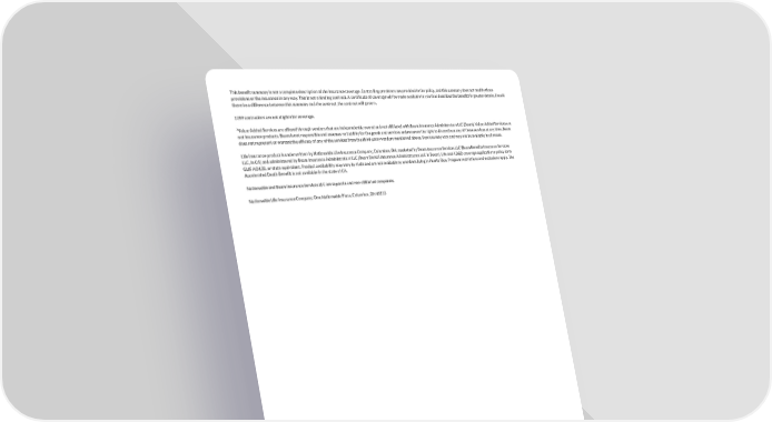 This benefit summary is not a complete description of the insurance coverage. Controlling provisions are provided in the policy, and this summary does not modify those provisions or the insurance in any way. This is not a binding contract. A certificate of coverage will be made available to you that describes the benefits in greater details. Should there be a difference between this summary and the contract, the contract will govern. 1099 contractors are not eligible for coverage. ²Value-Added Services are offered through vendors that are independently owned and not affiliated with Beam Insurance Administrators LLC (Beam). Value-Added Services are not insurance products. Beam is not responsible and assumes no liability for the goods and services and reserves the right to discontinue any of these services at any time. Beam does not represent or warrant the efficacy of any of the services from the third-party vendors mentioned above. Services may vary and may not be available in all states. Life insurance product is underwritten by Nationwide Life Insurance Company, Columbus, OH, marketed by Beam Insurance Services LLC (Beam Benefits Insurance Services LLC, in CA) and administered by Beam Insurance Administrators LLC (Beam Dental Insurance Administrators LLC in Texas). Life and AD&D coverage applicable to policy form GLIF AO L20, or state equivalent. Product availability may vary by state and are not available to members living in Puerto Rico. Program restrictions and exclusions apply. The Accelerated Death Benefit is not available in the state of CA. Nationwide and Beam Insurance Services LLC are separate and non-affiliated companies. Nationwide Life Insurance Company, One Nationwide Plaza, Columbus, OH 43215 BEAM SUPPORT LEARN MORE support@beambenefits.com | (800) 648 1179 beambenefits.com BM-SOB-0041-202306 3 of 3