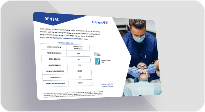 DENTAL Good oral care enhances overall physical health, appearance and mental well-being. Problems with the teeth and gums are common and easily treated health problems. Keep your teeth healthy and your smile bright with our dental benefit plan. Hover over the insurance terms below to learn what they mean. ESSENTIAL CHOICE PPO ANNUAL DEDUCTIBLE Individual: $50 Family: $150 PREVENTIVE SERVICES 100% Review Plan SDBC BASIC SERVICES 90% Essential Choice PPO MAJOR SERVICES 60% ANNUAL PLAN MAXIMUM $2,000 ORTHO SERVICES 50% ORTHO LIFETIME MAXIMUM $1,000 Click Here to Find an In-Network Provider The benefits and rates in this guide are for illustrative purposes only. To the extent the rates or the benefit plan information summarized herein differs from the underlying plan details specified in the insurance documents that govern the terms and conditions of the plans of insurance described in this guide, the underlying insurance documents will govern in all cases.