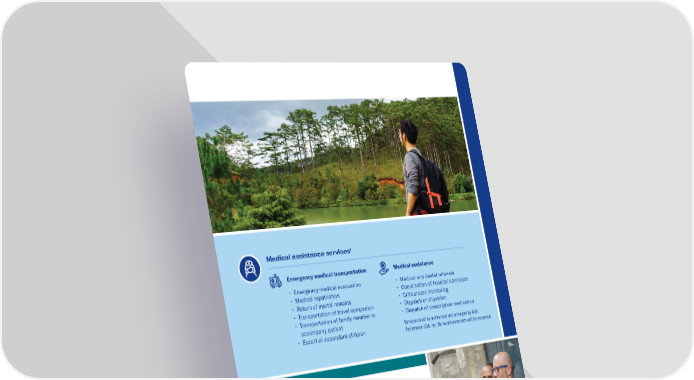 Medical assistance services1 Emergency medical transportation • Emergency medical evacuation • Medical repatriation • Return of mortal remains • Transportation of travel companion • Transportation of family member to accompany patient • Escort of dependent children Medical assistance • Medical and dental referrals • Coordination of hospital admission • Critical care monitoring • Dispatch of physician • Dispatch of prescription medication International medical teleconsultation2 Contact AXA Assistance USA 24 hours a day, 7 days a week Within the United States Outside the United States (855) 327-1476 1 (312) 356-5980 24/7 virtual medical care while abroad Doctor Please! enables you to book a video appointment or request a phone call with a healthcare professional at any time of day or night for minor ailments and conditions, treatment options, assistance with prescription refills and provider referrals, when needed. Prior to your trip, download the Doctor Please! app via Google Play or Apple Store. Access code US1020. Services must be authorized and arranged by AXA Assistance USA, Inc. No reimbursements will be accepted.