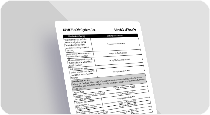 UPMC Health Options: Schedule of Benefits Overview Page 4 Page 6
