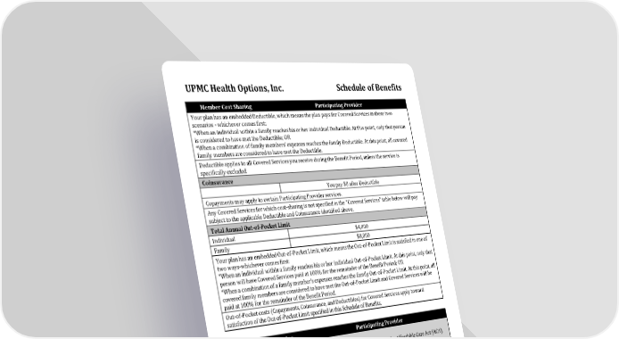 UPMC Health Options: Schedule of Benefits Overview Page 1 Page 3