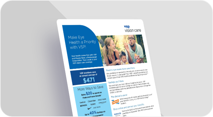 Discover the savings and health benefits provided to VSP members through routine eye exams, discounts on eyewear, and comprehensive vision care options.